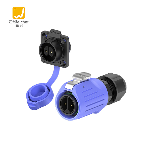 LP16型2芯蓝色焊接款10A电源法兰塑胶款防水连接器航空插头插座