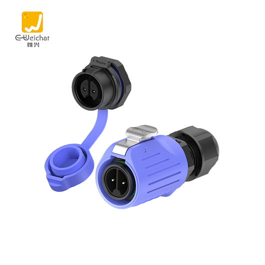 LP16型2芯蓝色塑胶焊接款10A电源面板防水连接器航空插头插座