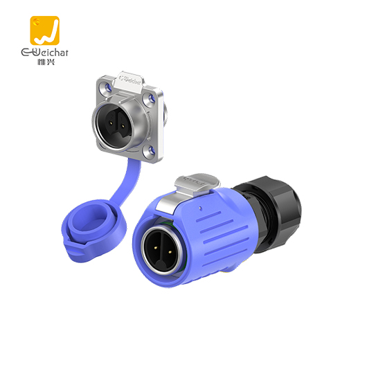 LP16型2芯蓝色焊接款10A电源法兰金属款防水连接器航空插头插座