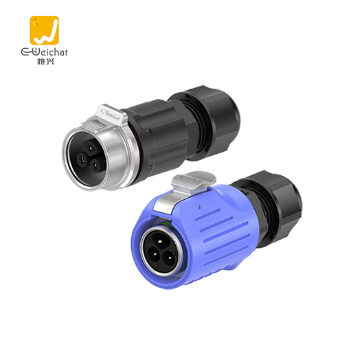 LP16型3芯蓝色金属焊接款10A电源对插防水连接器航空插头插座