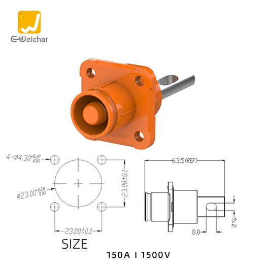 惟兴光孔式橙色E150正极IP67防水150A不可旋转储能连接器