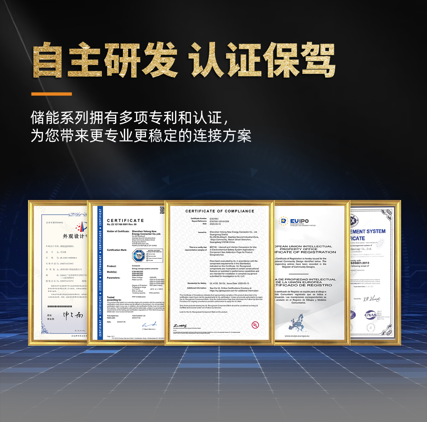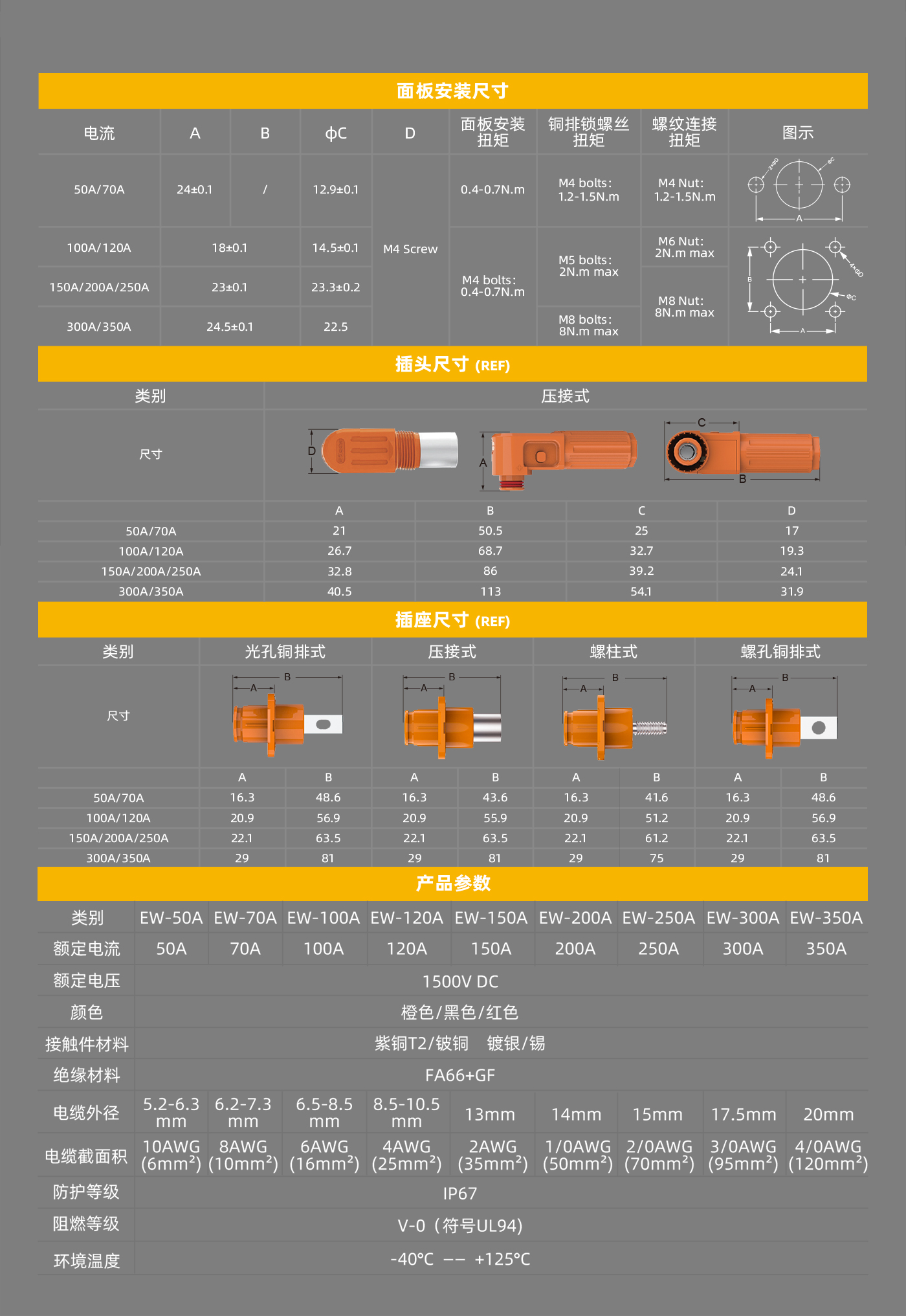 惟兴光孔式橙色E250正极IP67防水250A不可旋转储能连接器