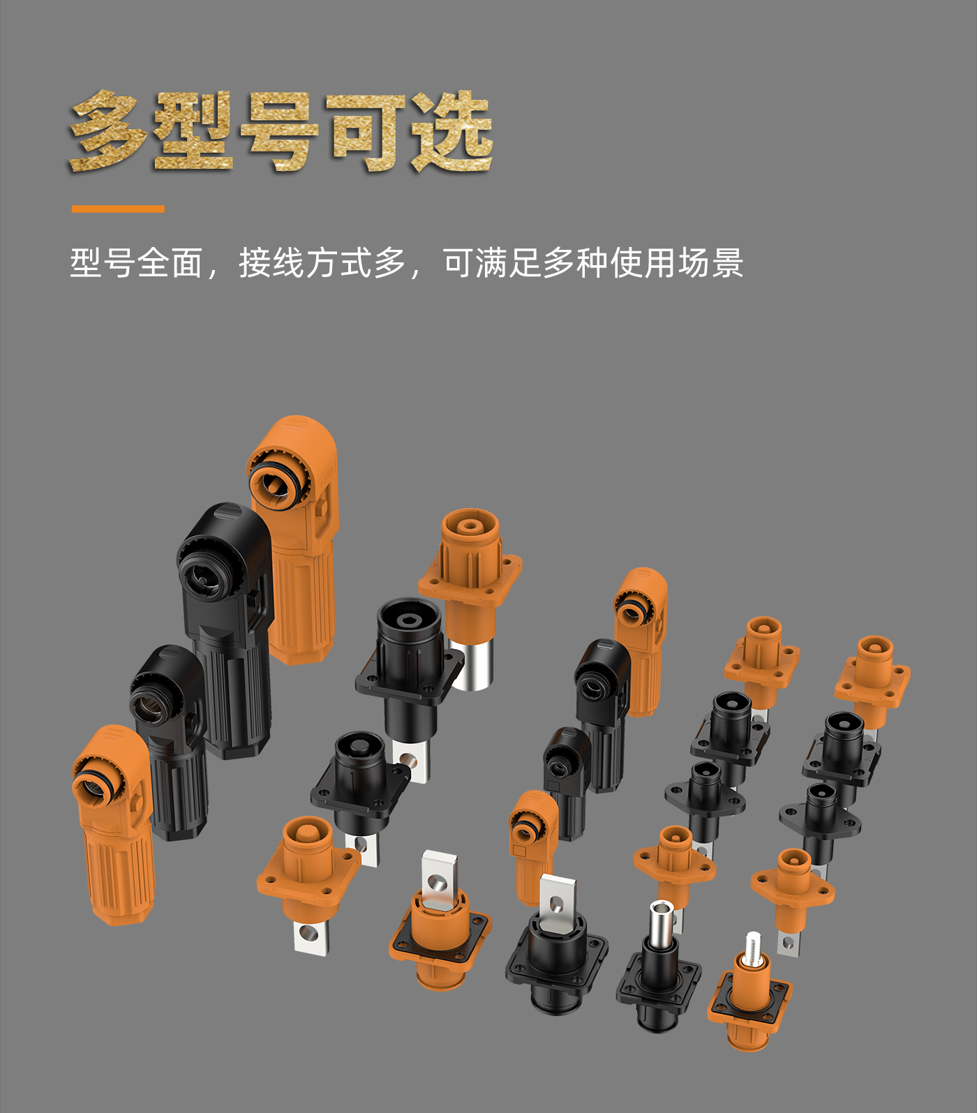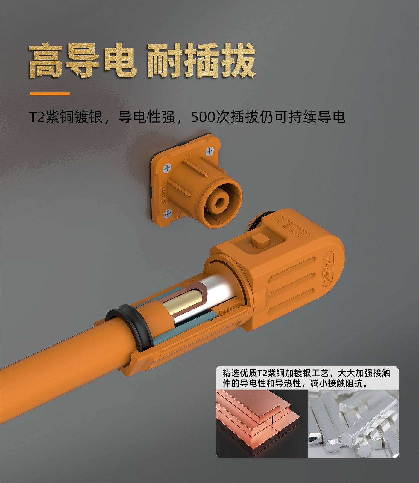 惟兴光孔式橙色E350正极IP67防水350A不可旋转储能连接器