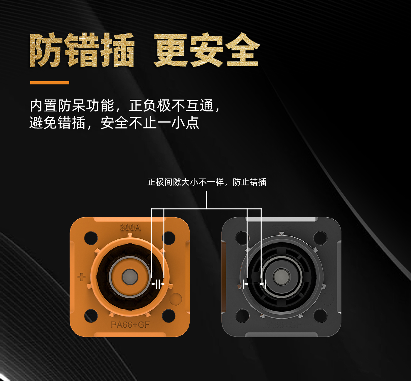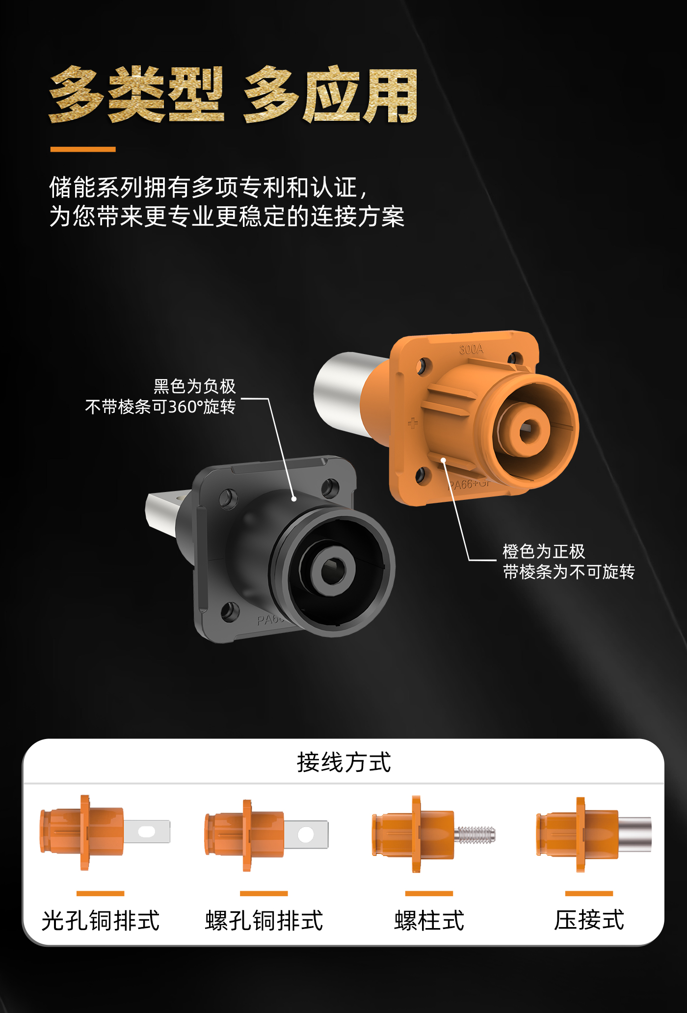 惟兴光孔式橙色E300正极IP67防水300A不可旋转储能连接器