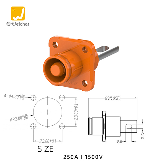 惟兴光孔式橙色E250正极IP67防水250A不可旋转储能连接器