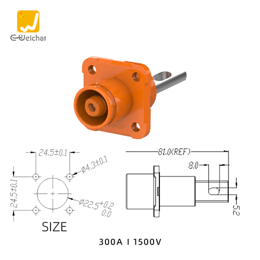 惟兴光孔式橙色E300正极IP67防水300A不可旋转储能连接器