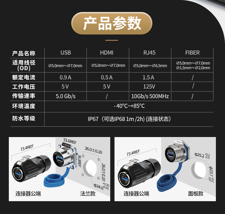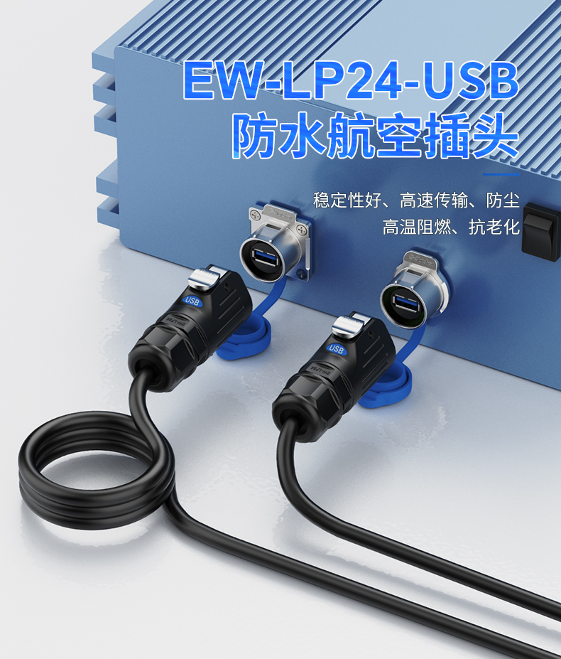 LP24型USB3.0高速传输数据法兰式防水连接器航空插头插座