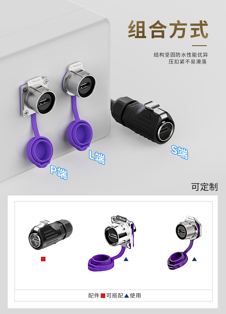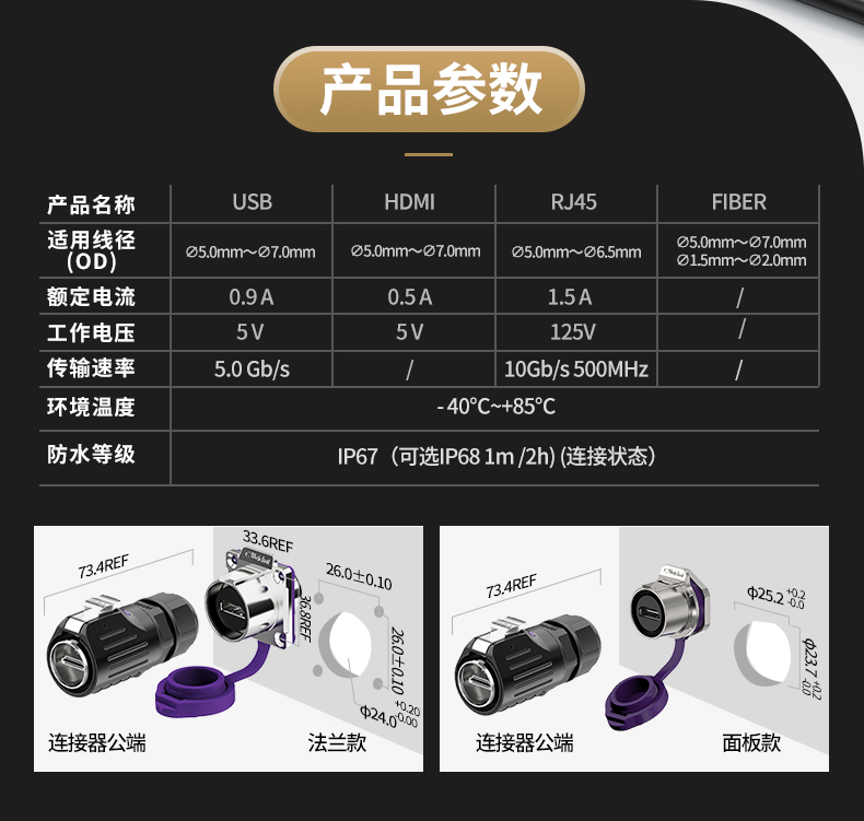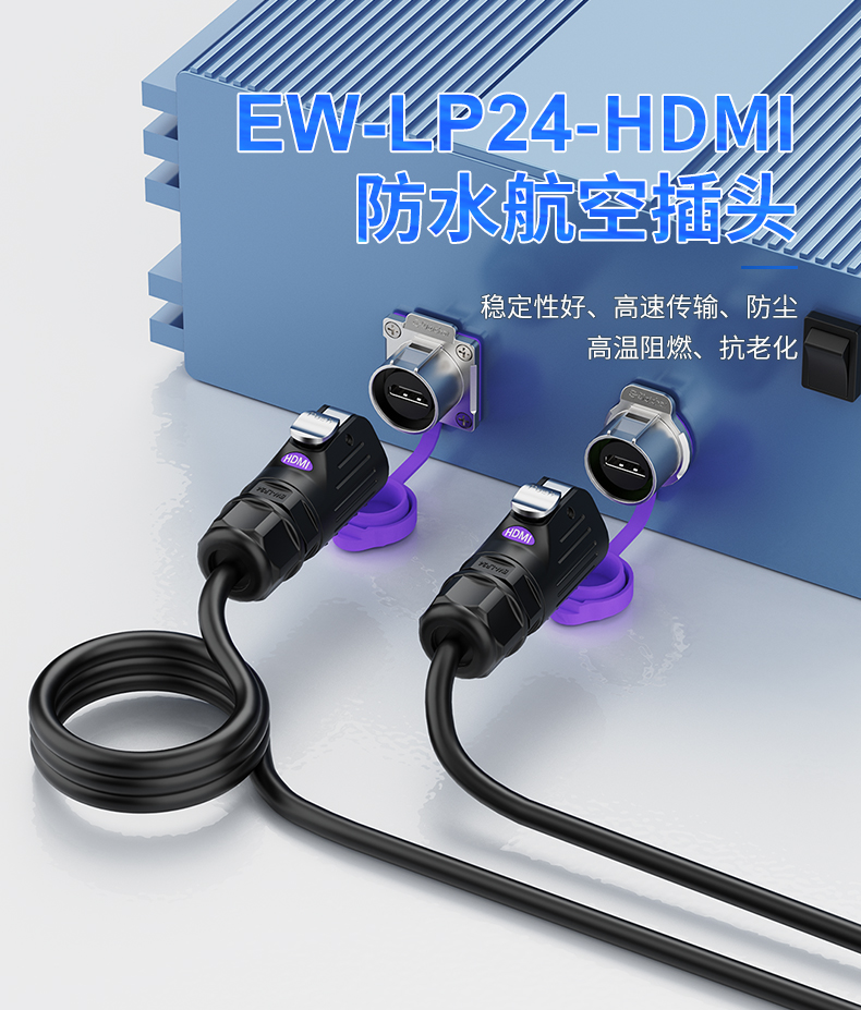 LP24型HDMI2.0高速传输数据面板式防水连接器航空插头插座