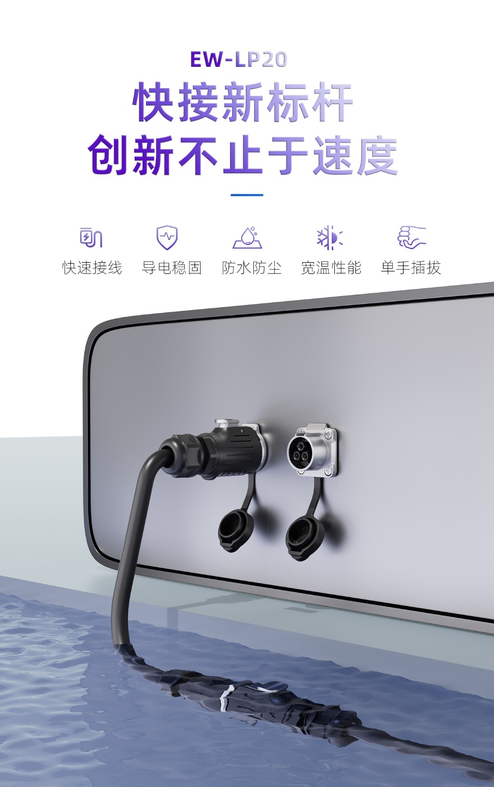 LP20型2芯快接接线款对接式塑料防水连接器