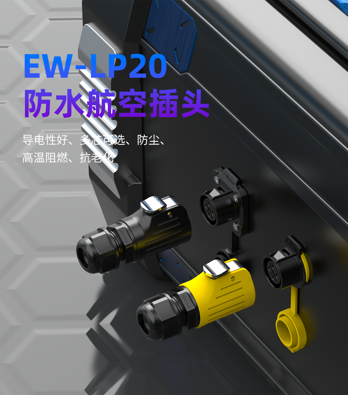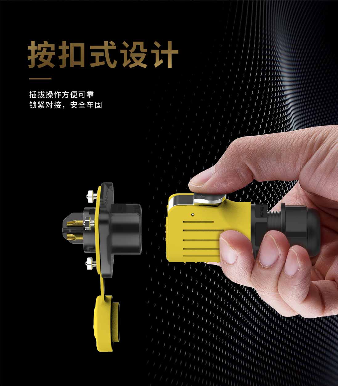 LP20型2芯焊接款黄色20A电源面板式全塑料防水连接器