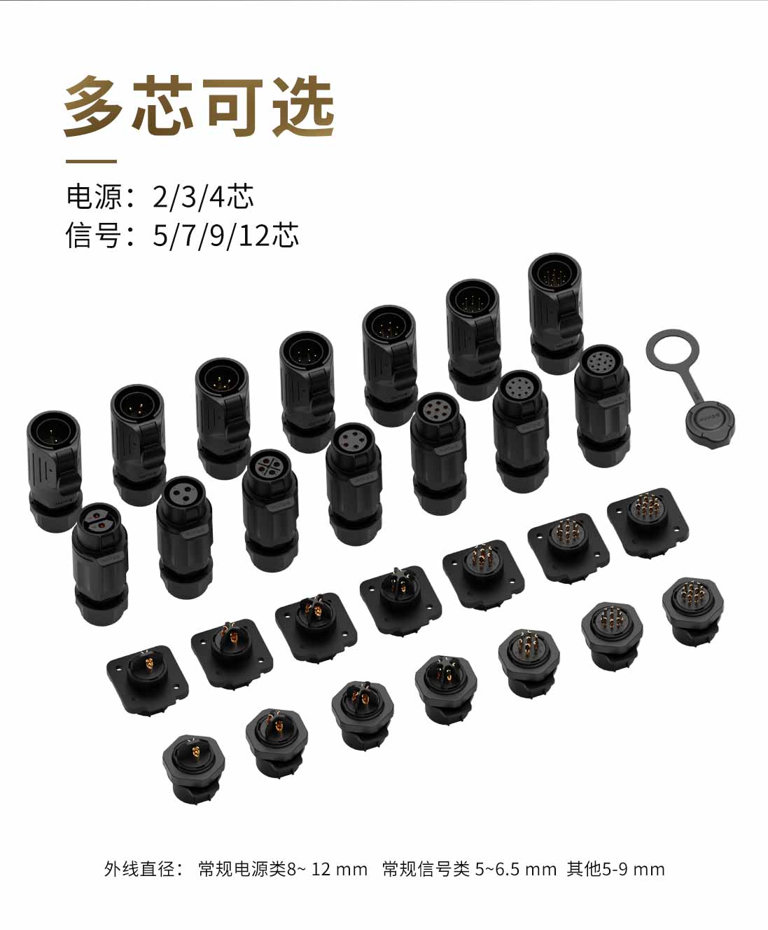 LP12型7芯焊接款金属+塑料3A电源面板防水连接器航空插头插座