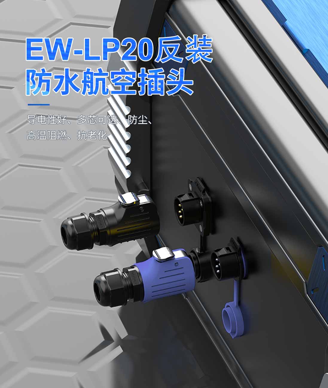 LP20型2芯锁线款蓝色20A电源面板式全塑料防水连接器