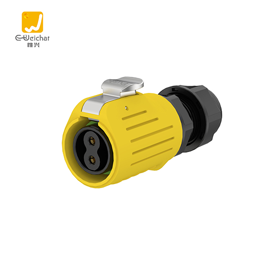 LP20型2芯锁线款黄色20A电源面板式全塑料防水连接器