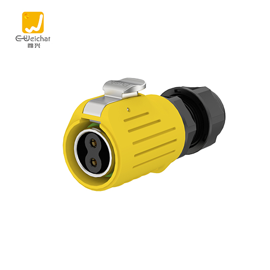LP20型2芯锁线款黄色20A电源面板式金属+塑料防水连接器