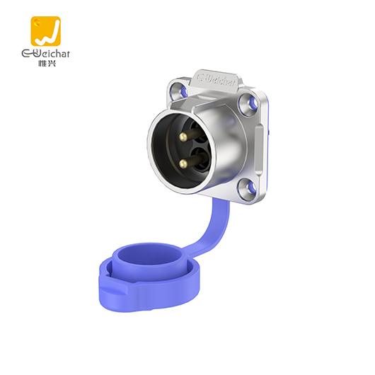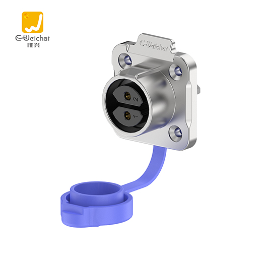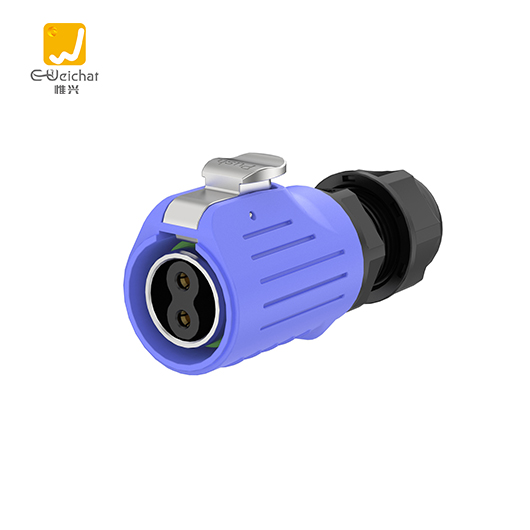 LP20型2芯锁线款蓝色20A电源法兰式金属+塑料防水连接器