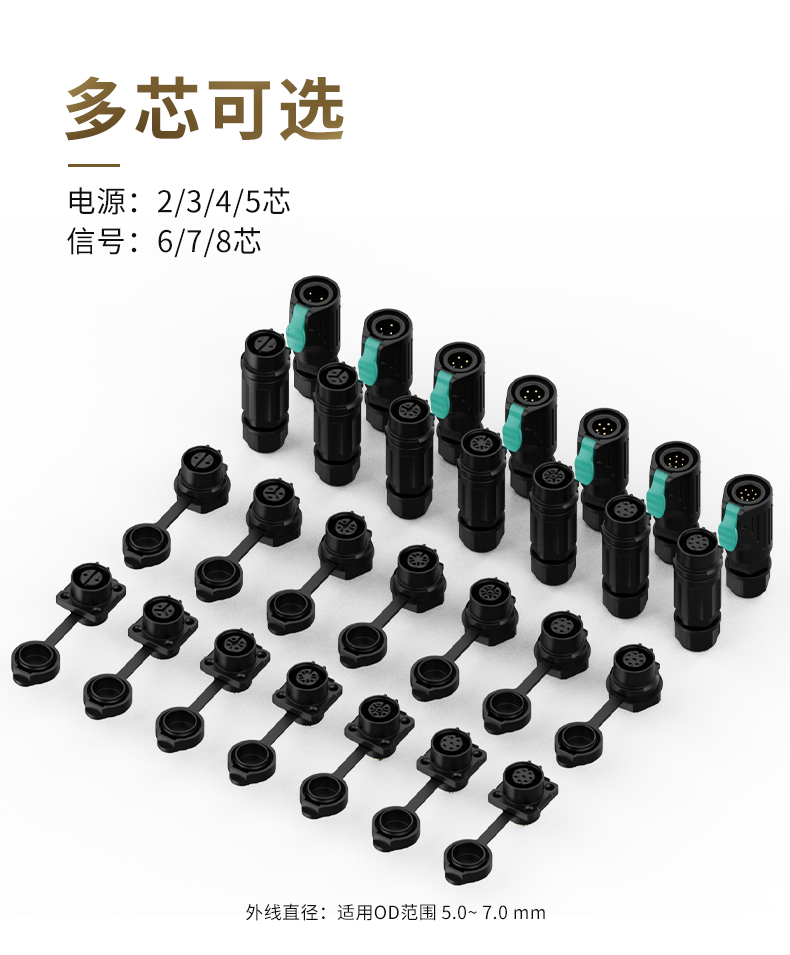 LP12型7芯焊接款3A电源线对线金属+塑料防水连接器航空插头插座
